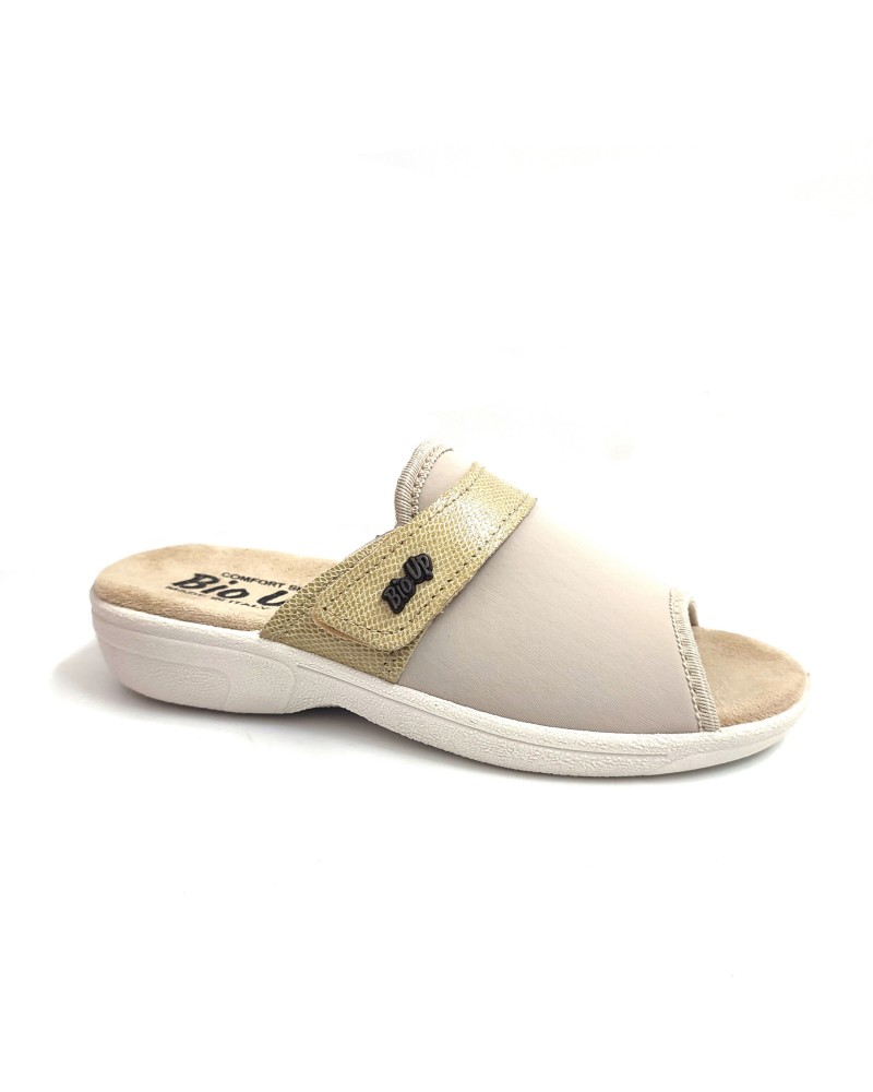 Sandalia de señora en licra, planta tejido acolchada y piso de goma antideslizante