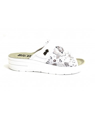 Sandalia de señora en licra estampada, planta piel y piso de goma antideslizante
