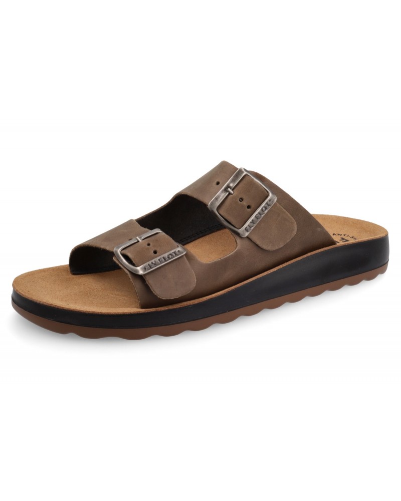 Sandalia 2 hebillas en piel con planta BIO piel y piso antideslizante