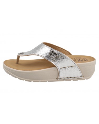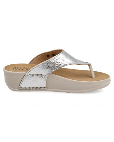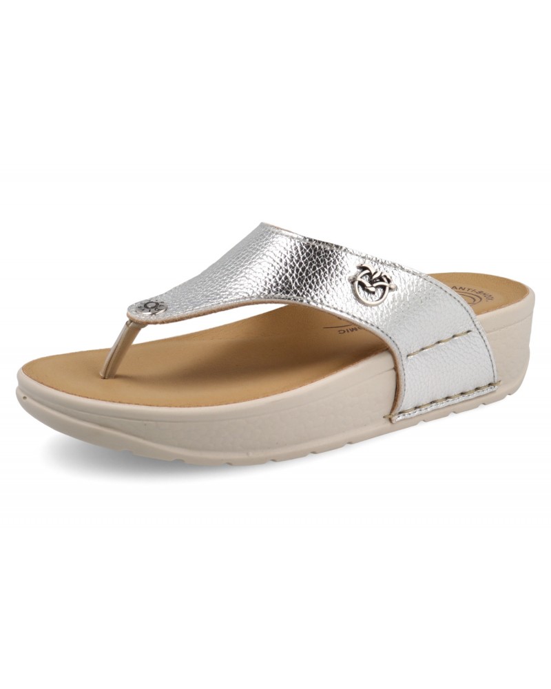 Sandalia esclava metalizada en sintético, planta sintético y piso antideslizante.