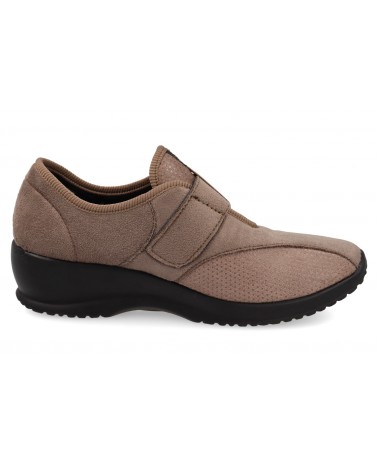 Zapato confort para señora en tejido con un velcro, elástico y piso de goma antideslizante