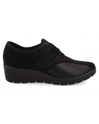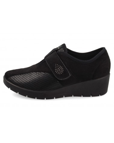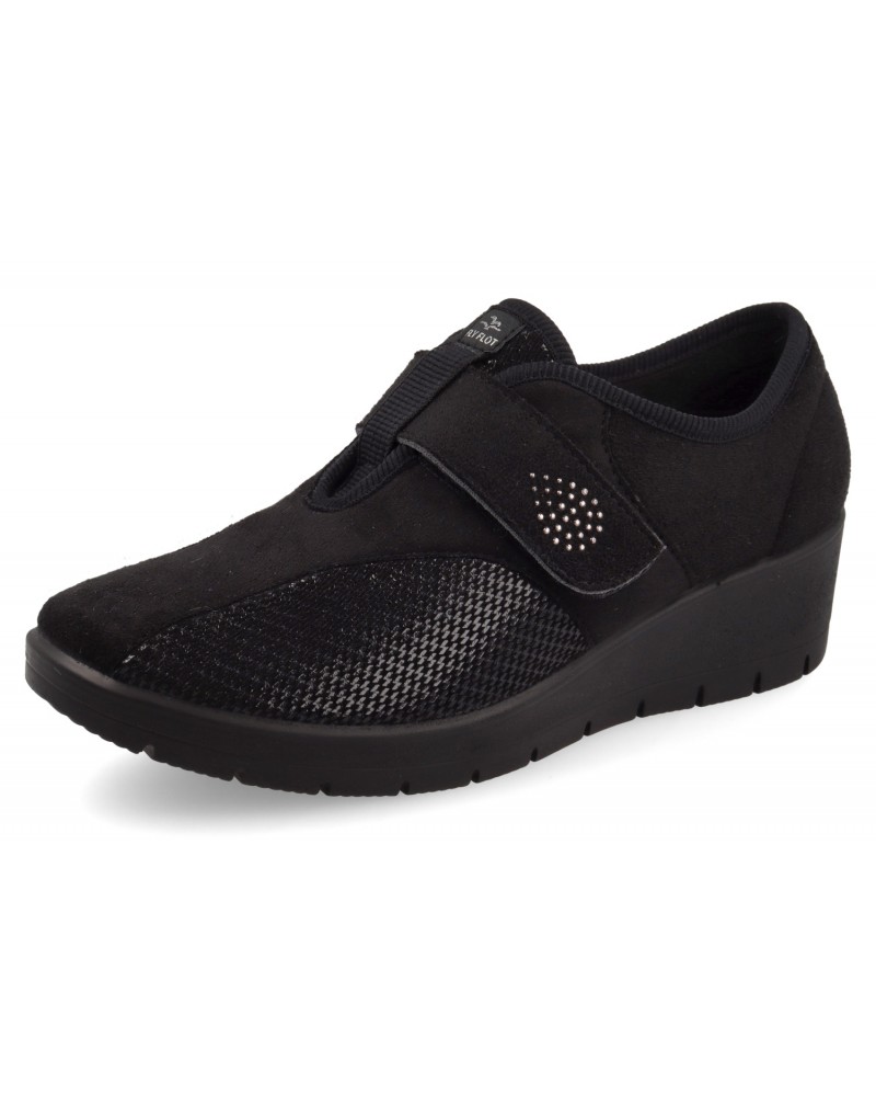 Zapato confort para señora en tejido con un velcro, elástico y piso de goma antideslizante
