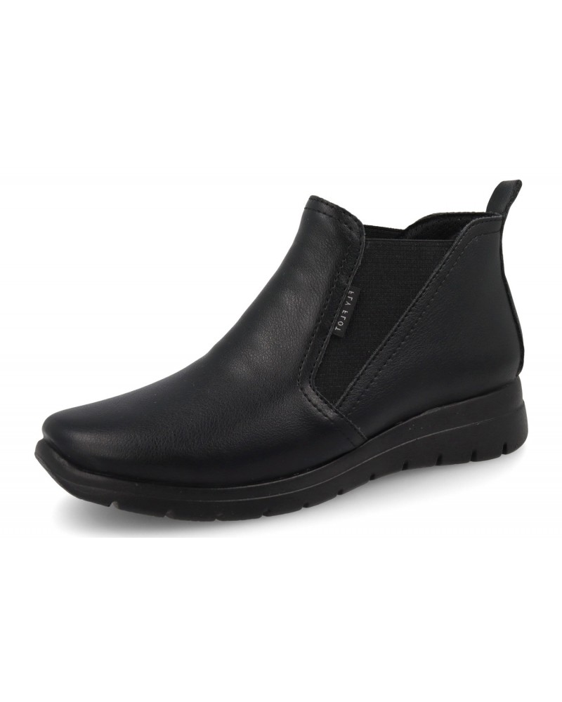 Botín confort para señora en sintético con dos elásticos laterales y piso de goma antideslizante
