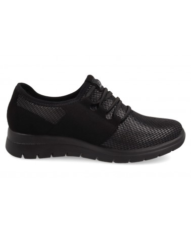 Zapato confort para señora en tejido con cordones elásticos y piso de goma antideslizante