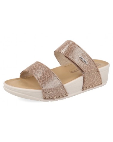 Sandalia dos tiras con velcro, planta sintético y piso antideslizante.
